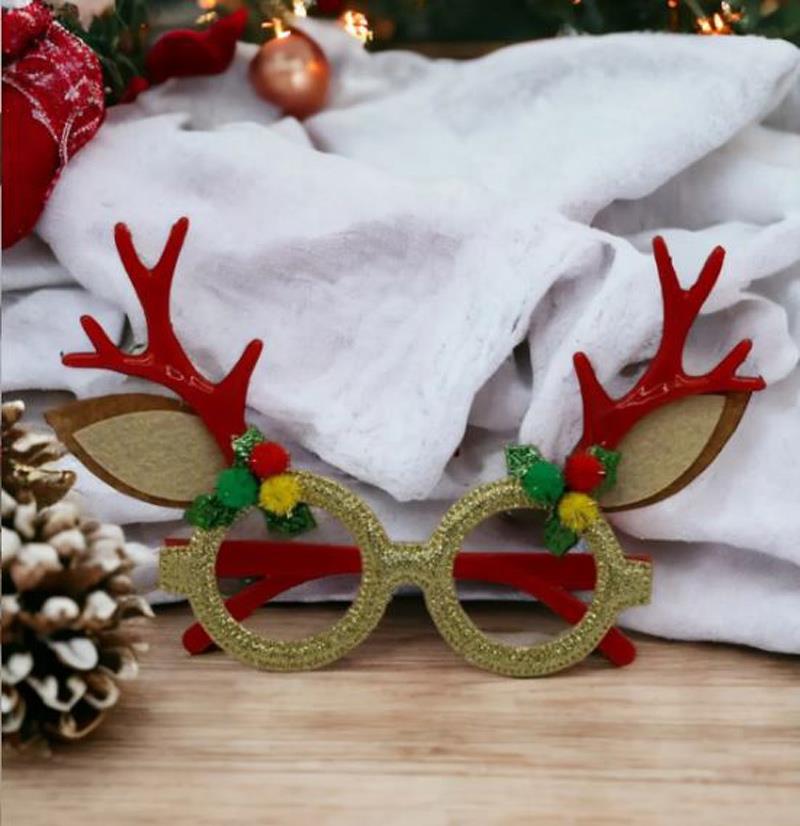 Elf Kulaklı Kırmızı Boynuzlu Yılbaşı Gözlük